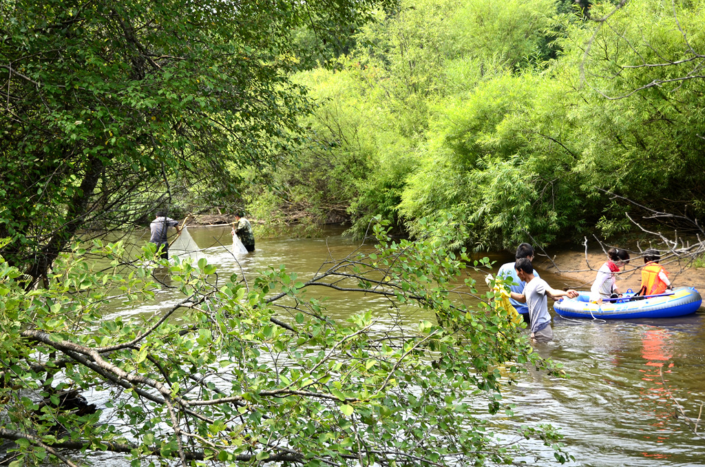 抬鱼+漂流,真的很惬意,水十分凉,因为几个南方人都没下水。